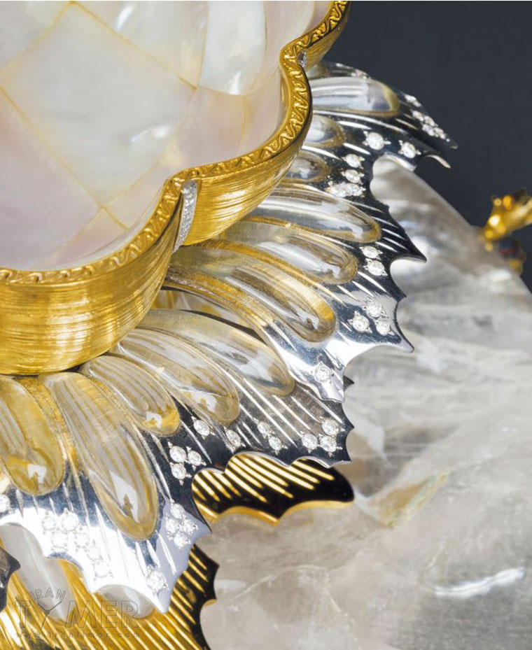 در این ساعتها علاوبر خلاقیت ، تعداد قابل توجهی از سنگهای قیمتی مانند : برلیان ، یاقوت و زمرد همراه با طلا بکاررفته است .
