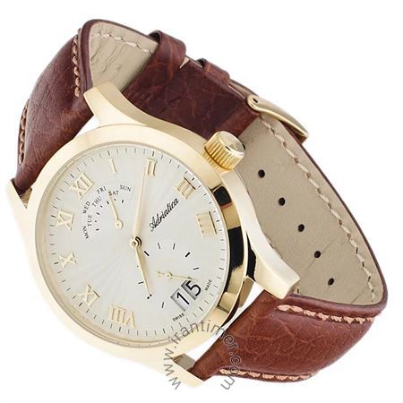 ساعت آدریاتیکا اصالت سوئیسی دارد و اساسی ترین چیزی که در ظاهر آن جلب توجه می کند، رنگ بندی دوست داشتنی طلائی و قهوه ای می باشد. همچنین در توصیف ظاهر این محصول باکیفیت باید بگوییم سادگی دوست داشتنی و عقربه آنالوگ و مجموعا تقویم روزشمار و نمایشگر روزهای هفته با ترکیب زیبا و هارمونیک در کنار هم چیده شده اند و جلوه ی کلاسیک باوقار به ساعت داده است. این ساعت را می توان با لباس مجلسی و کلاسیک به راحتی ست کرد.