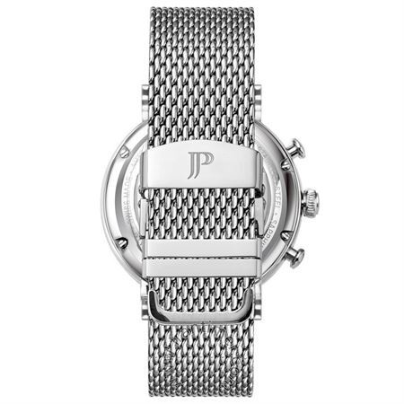 در بررسی ظاهری ساعت مچی مردانه ژاک فیلیپ مدل JPAGC021236 ، صفحه های مربوط به کرونوگراف، تقویم روزشمار و نمایشگر روزهای هفته به چشم می خورد اولین موردی که توجه ما را به خود جلب می کند، جلوه رنگی زیبا نقره ای و سرمه ای می باشد که همه این ها در کنار هم با ترکیب زیبا خودنمایی می کنند. این ساعت طراحی صفحه نسبتا پیچیده می باشد و جلوه ی کلاسیک دوست داشتنی دارد. در نتیجه کیفیت ظاهر کلاسیک با کلاس این ساعت پرطرفدار را نمی توان دست کم گرفت!