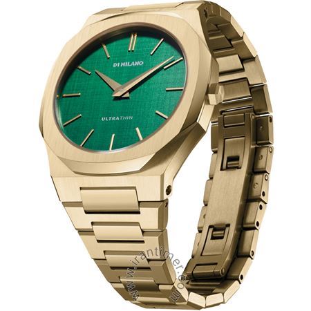 این ساعت زنانه دی وان میلانو ایتالیایی ظاهری ساده دوست داشتنی دارد و با بررسی المان های ظاهری آن می توان گفت در مجموع استایل ساده دارد. اولین چیزی که در ساعت مچی زنانه دی وان میلانو مدل D1-UTBL18 توجه ما را به خود جلب می کند، جلوه رنگی با کلاس طلائی و سبز می باشد و تنها عقربه ها با ترکیب هارمونیک همراه عقربه آنالوگ چیده شده اند و جلوه ی ساده دوست داشتنی به این ساعت داده اند.