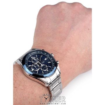 قطعا نمی توان از بررسی ظاهر این ساعت دارای شیشه ضد خش خوش ساخت به راحتی گذشت. در این بررسی، اصلی ترین موردی که توجه ما را به خود جلب می کند، هارمونی رنگی شیک آبی و استیل می باشد. صفحه با ترکیب رنگی شیک و دوست داشتنی آبی در کنار بند نقره ای از جنس استیل و استیل ضد زنگ و صفحه آبی و سرمه ای رنگ است که نمای کلاسیک و اسپرت چشم نواز به این ساعت بخشیده است. در قلب این ساعت عقربه های شب تاب با ترکیب زیبا و هارمونیک با صفحه های مربوط به کرونوگراف، نمایشگر ساعت شبانه روز، تقویم روزشمار و عقربه های شبرنگ ، به چشم می خورد که مجموع این ویژگی ها دل هر آقا و بانویی را می برد. همچنین باید بگوییم این ساعت کلاسیک و اسپرت مناسب ست کردن با لباس اسپرت روزمره و مجلسی است و از این نظر انتخاب خوبی برای آقایان شیک و کلاسیک و اسپرت پسند شمرده می شود.