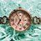 هنگامی که ساعت مچی زنانه کاسیو مدل SHE-3067PG-4AUDF را از لحاظ ظاهری بررسی می کنیم، نمای رنگی شیک مسی مهم ترین چیزی است که توجه ما را به خود جلب می کند. در کنار آن یکی دیگر از خصوصیات ظاهری که تمام کننده ی استایل کلاسیک ساعت مچی است؛ صفحه ظریف و کوچک است. در نگاه عمیق تر از این بررسی، صفحه های مربوط به کرونوگراف، نمایشگر ساعت شبانه روز، تقویم روزشمار، نمایشگر روزهای هفته، عقربه های شبرنگ و نگین های اتمی جلب توجه می کند که با ترکیب زیبا در کنار یکدیگر چیده شده اند. این ساعت برای نمایش زمان از عقربه های شب تاب استفاده کرده است و بند رزگلد از جنس استیل ضد زنگ و صفحه رزگلد رنگ آن، جلوه ی کلاسیک دلنشین به ساعت بخشیده است و از این نظر مناسب ست شدن با لباس های کلاسیک و مجلسی است.