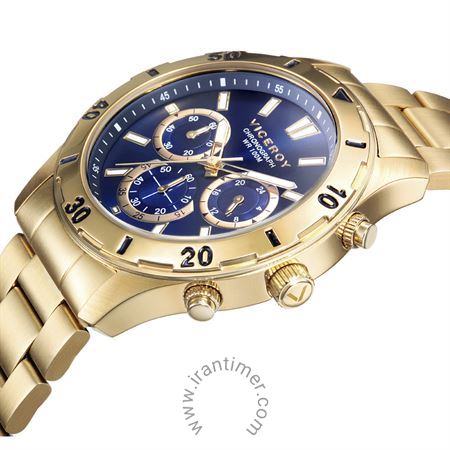 ساعت ویسروی اصالت اسپانیا دارد و اصلی ترین چیزی که در ظاهر آن جلب توجه می کند، رنگ بندی جذاب طلائی و سرمه ای می باشد. همچنین در توصیف ظاهر این محصول جذاب باید بگوییم صفحه بزرگ و صفحه چند عقربه ای و مجموعا صفحه های مربوط به کرونوگراف، نمایشگر روزهای هفته و عقربه های شبرنگ با ترکیب زیبا و هارمونیک در کنار هم چیده شده اند و نمای کلاسیک جذاب به ساعت داده است. این ساعت را می توان با لباس مجلسی و کلاسیک به زیبایی ست کرد.