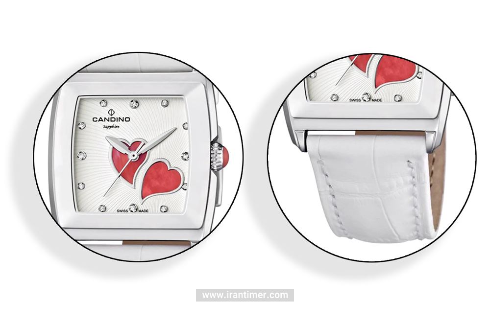 وقتی به ظاهر ساعت مچی زنانه کاندینو مدل c4475/3 نگاه می کنیم، استایل فشن و اسپرت و صفحه چهارگوش خاص توجه ما را به خود جلب می کند. اما در این بررسی اساسی ترین چیزی که توجه ما را به خور جلب می کند، رنگ بندی زیبا سفید و استیل و قرمز است و ترکیب همین ویژگی با عقربه آنالوگ ، جلوه فشن و اسپرت شیک و خاص به این ساعت داده است. در صفحه این ساعت نیز تنها عقربه ها با ترکیب منظم دیده می شود. علاوه بر این ها امکانات ویژه ای دارد که در اینجا به آن ها می پردازیم.