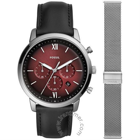 ساعت مچی مردانه کلاسیک بند چرمی، کرونوگراف، نمایش تاریخ، همراه با بند استیل